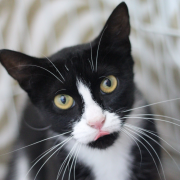 Чёрно-белый улыбака Кокос так и светится позитивом! Малыш родился на улице, но с такой уверенностью разбирается с делами, выпрашивает еду и виртуозно валяется на подушечке, словно всю жизнь был домашним.