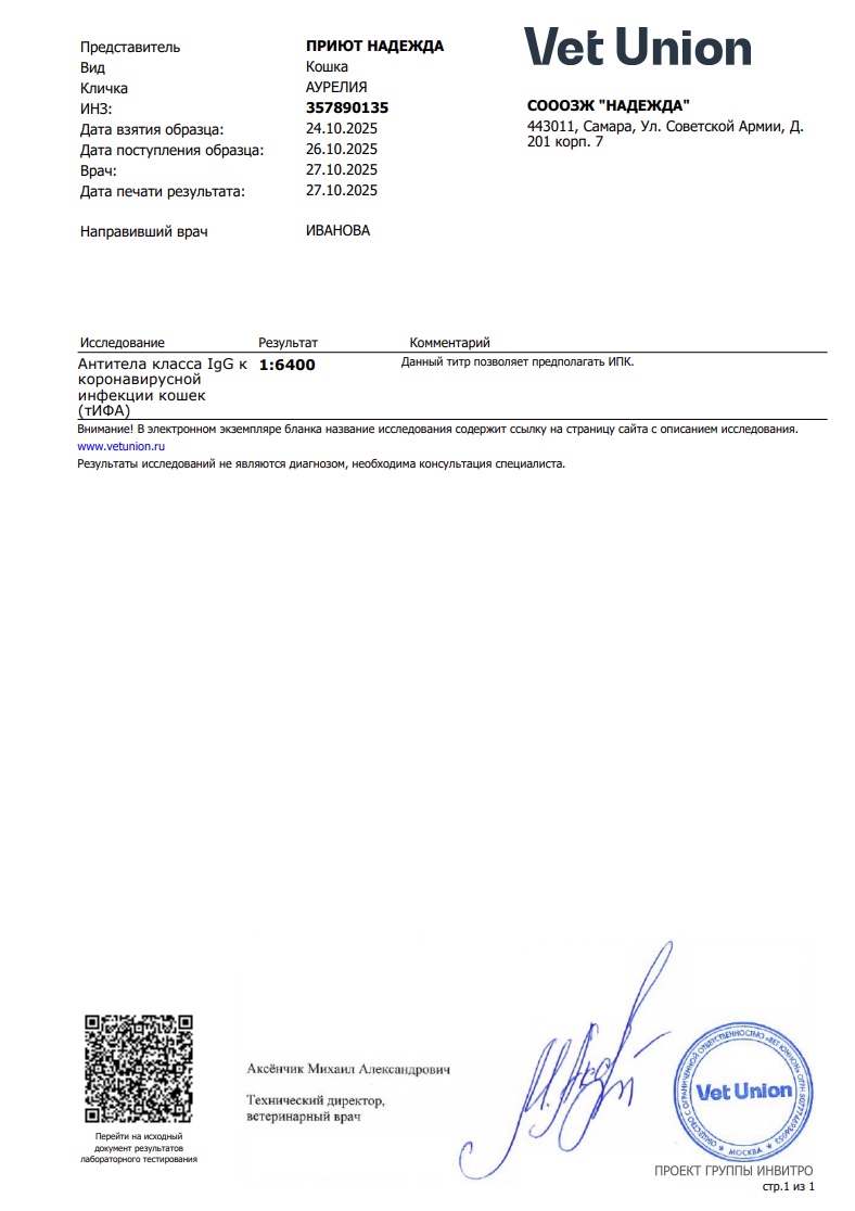 Аурелия прибилась к подъезду и громко, настойчиво просила о помощи. Добрая женщина стала подкармливать её, но однажды кошечка внезапно пропала. Целый месяц о ней ничего не было слышно, пока в один хмурый дождливый день она не вернулась. Она была уже в очереди на размещение в приюте — так Аурелия экстренно оказалась в безопасности.